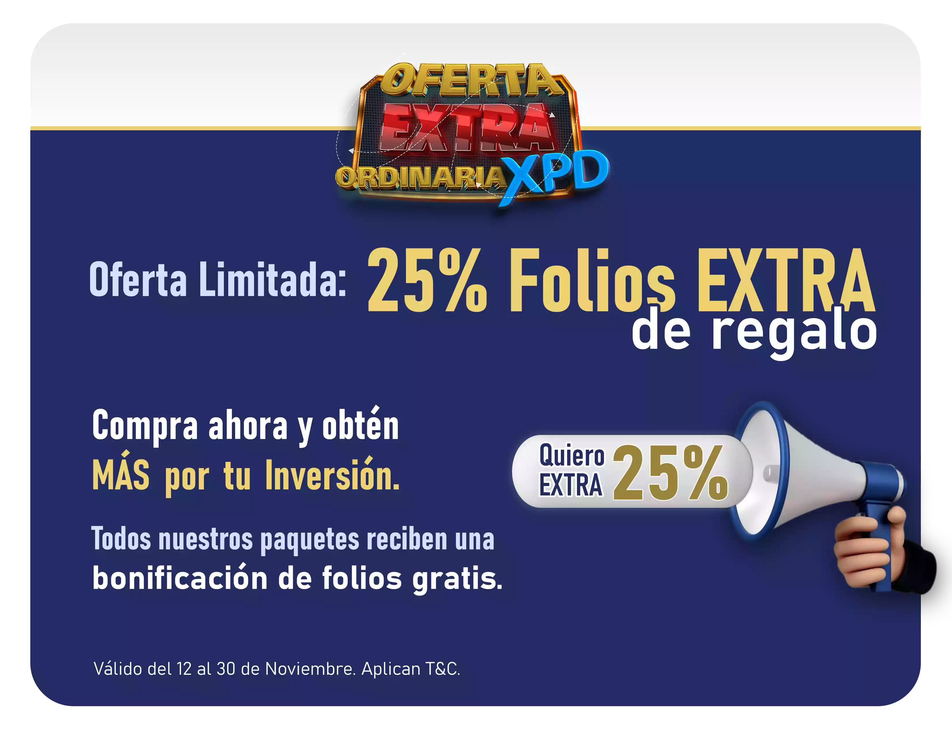 Al adquirir cualquier paquete de folios XPD podrás emitir CFDI de Nómina y cualquier tipo de CFDI que necesites al instante.